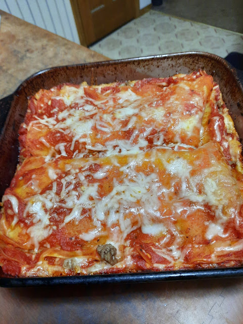 I am the chauffeur again, now that The Pony is back home. Not that he agrees to ride with me very often. He's a homebody unless lured out by food. For our weekly takeout on Friday, we chose Little Caesar's. Not Farmer H. He had other plans. But The Pony and I decided on pizza and breadsticks. He made some pointed references to eating the last of his leftovers on the THIRD DAY. So I casually mentioned that I wouldn't feed any pizza to the dogs unless it was sitting out on the counter in their treat area.